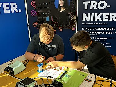 Die Schüler haben von den Azubis über die Ausbildung bei SIEB & MEYER berichtet bekommen und konnten anschließend eine Blinklichtschaltung selber aufbauen und löten.